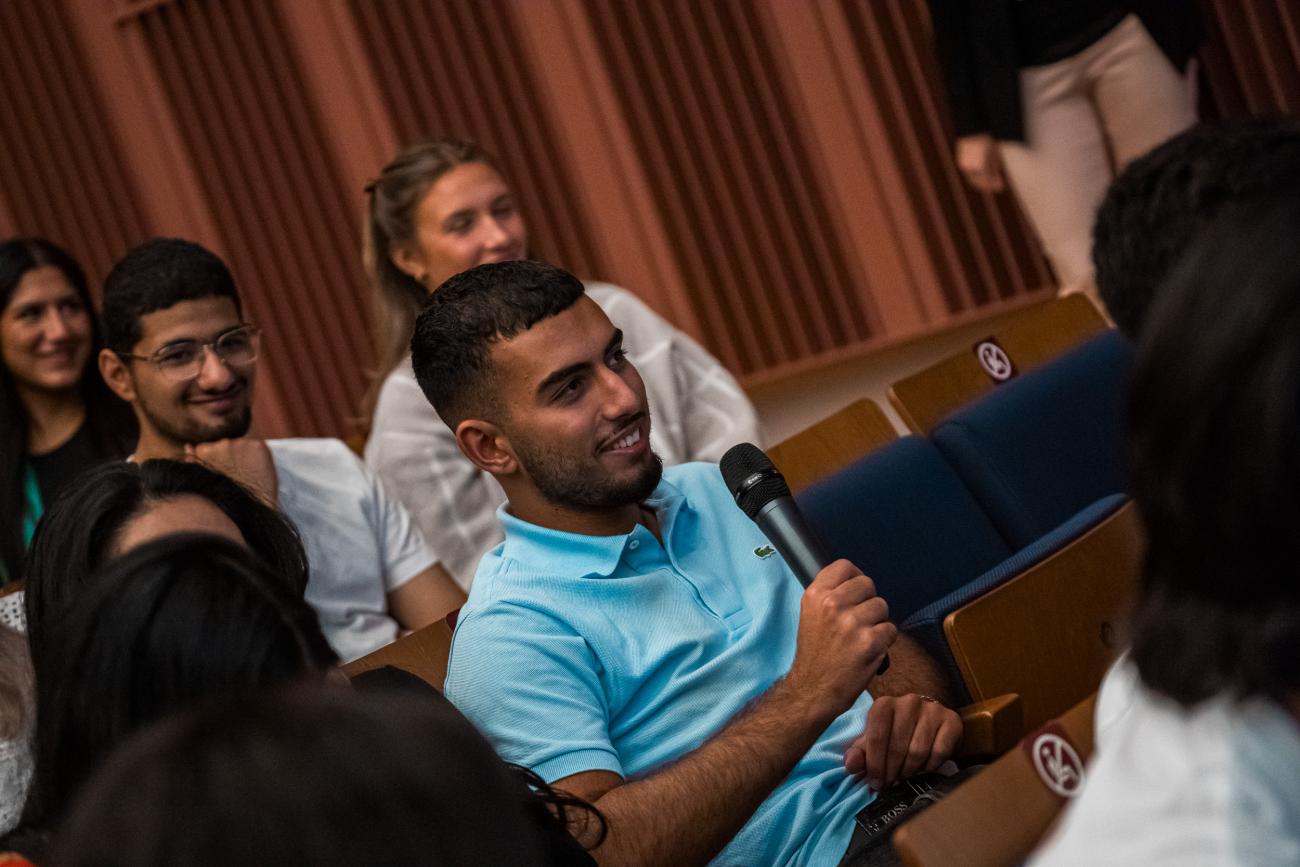 Meeting with the new students, RSU Rector Prof. Aigars Pētersons emphasised RSU's commitment to creating a truly international environment. With approximately one in four students and visiting lecturers hailing from abroad, the university offers a lot of opportunities in terms of new contacts and experiences. The Rector wished them success in their studies and reminded the students of the wide opportunities that student life at the University offers. Speaking after the Rector, the Director of International Department Baiba Pētersone encouraged the new students to approach their studies and their chosen future profession with enthusiasm from the very first day, to take advantage of all the opportunities offered by the international and multicultural environment at RSU, and to strive to create positive change and improve the world by applying their knowledge and experience.