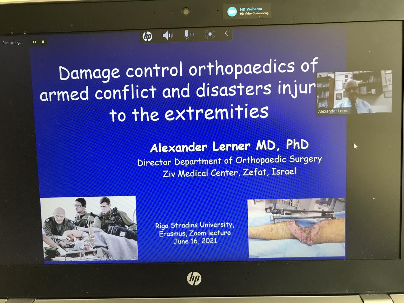Rīga Stradiņš University (RSU) has a long-term cooperation with the Department of Orthopaedics at Bar-Ilan University in Israel. As part of this cooperation, Alexander Lerner, MD PhD, who is a Professor at the Azrieli Faculty of Medicine and the Head of the Orthopaedic Department at Ziv Medical Center, gave a guest lecture on 16 June this year at the RSU Department of Orthopaedics on “Damage control orthopaedics of armed conflict and disasters injuries to the extremities” as part of the Erasmus+ programme.