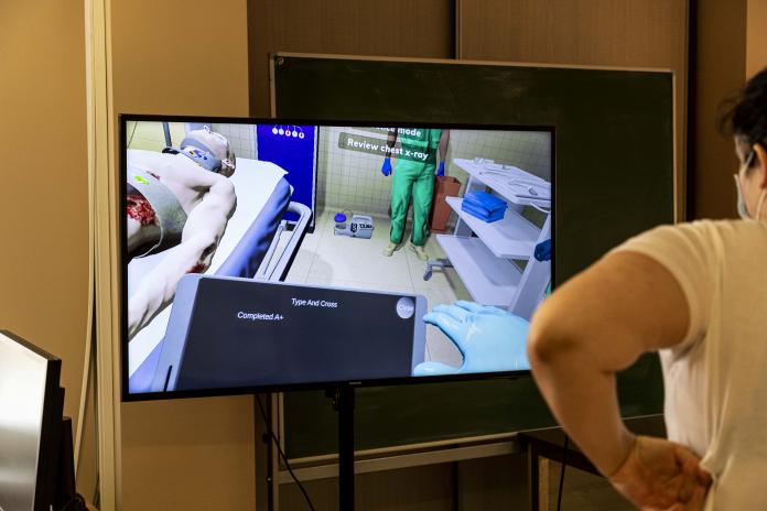 The 3D trauma simulator allowed the students to learn algorithms to assess and assist patients with injuries caused by explosions – to perform a primary examination, get their medical history, choose the necessary exams, and then decide on further treatment options.