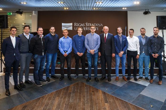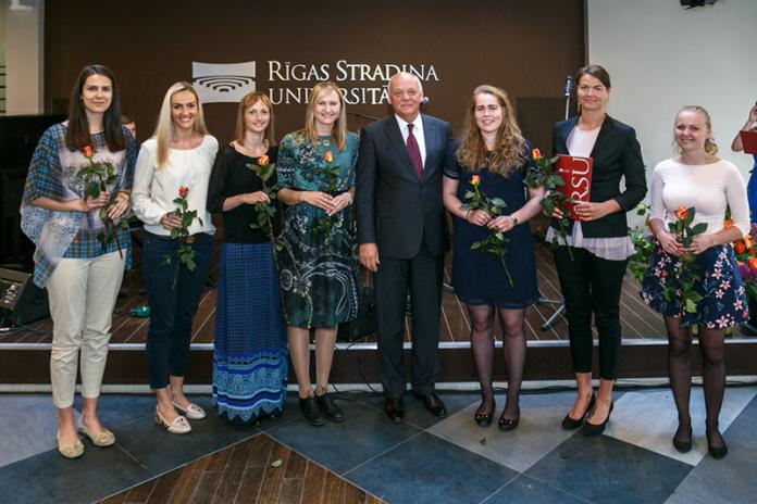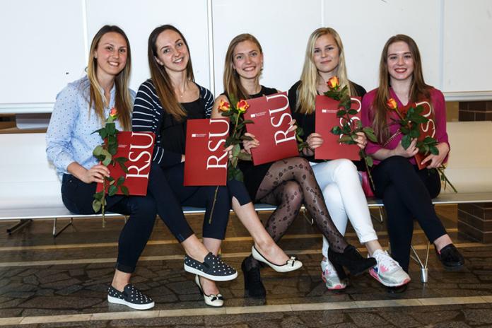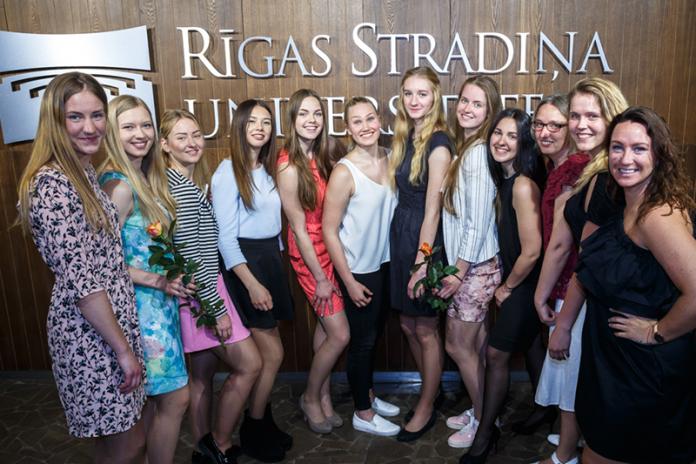 In team sports recognition awards were presented to seven RSU teams with remarkable achievements in the past academic year: RSU aesthetic group gymnastics team (coach: Maruta Hoferte), men's football team RSU/BAO Dobele (coach: Aleksandrs Radčenko), men's floorball team RSU/Babīte (coach: Reinis Rugājs), women's volleyball team RSU/MVS (coach: Inguna Minusa), men's basketball team RSU and women's basketball team RSU (coach: Aivars Vīnbergs) as well as women's basketball team RSU-2 (coach: Daina Lazdeniece-Auniņa).