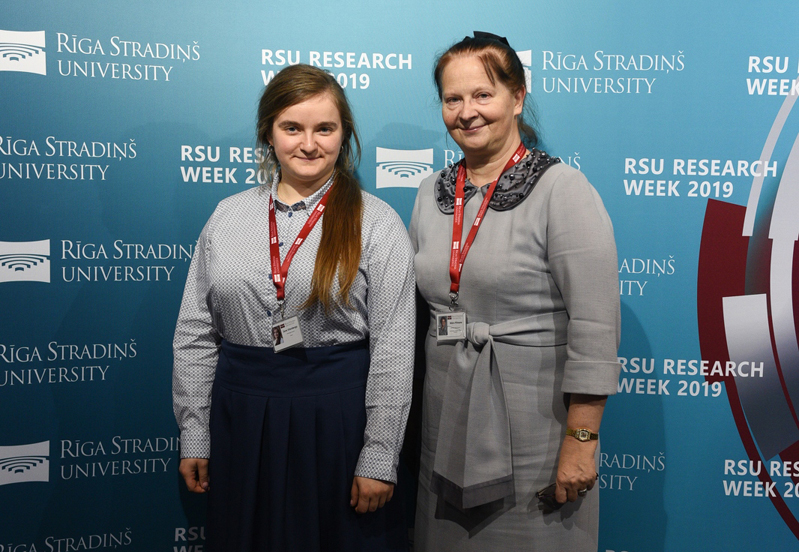 From the left: lecturer Zane Vitenberga-Verza and Professor Māra Pilmane. RSU Research Week, International Research Conference Knowledge for Use in Practice on Medical and Healthcare Sciences on 2 April 2019.