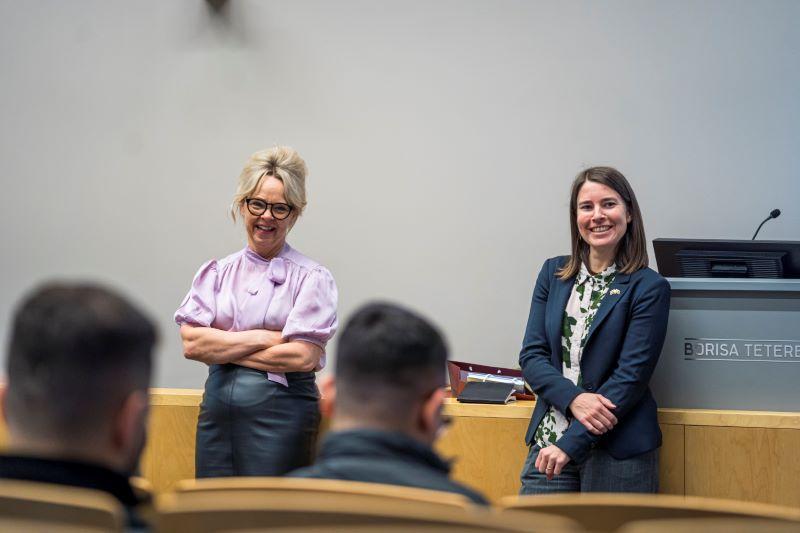 On Wednesday, 6 November, the Rīga Stradiņš University (RSU) Medical Education Technology Centre (METC) hosted the Ambassador of Sweden Karin Höglund and the First Secretary of the Embassy Ylva Hammarsten. During the meeting, the Ambassador was introduced to simulation-based medical education, which ensures a safe, modern and efficient learning process. Cooperation opportunities with clinical medicine centres in Sweden were also discussed.
