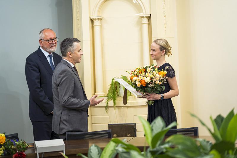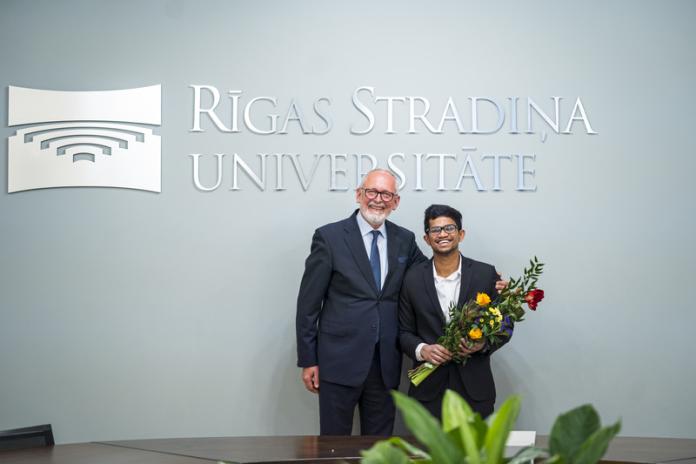 On Tuesday, 7 January 2025, Rīga Stradiņš University (RSU) Rector Prof. Aigars Pētersons, as well as Vice-Rectors Dins Šmits and Toms Baumanis welcomed the newly elected leaders of the RSU Student Union (Studējošo pašpārvalde, SP) and the RSU International Student Association (ISA), Luīze Monta Remese and Mazeen Mazhar.