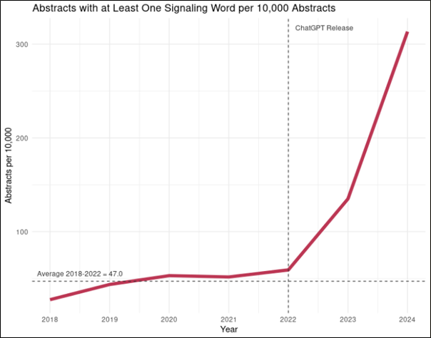 - The word "delve" showed the most significant increase in usage, with a 17-fold increase in frequency after ChatGPT was released;