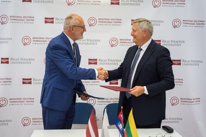 On 17 September, a large delegation from the Lithuanian University of Health Sciences (LSMU) in Kaunas visited Rīga Stradiņš University (RSU). During the visit, the management of the two universities signed a strategic cooperation agreement focusing on the development of medical technology and educational innovations, military medicine research, and the improvement of simulation-based training.