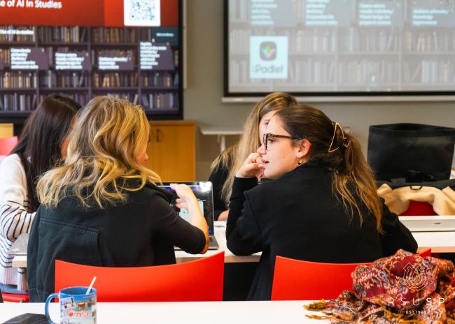 In different group activities throughout the day, students were split into groups and tasked to use AI in different ways, discuss their results, and brainstorm about how AI can be utilised to improve the study process.