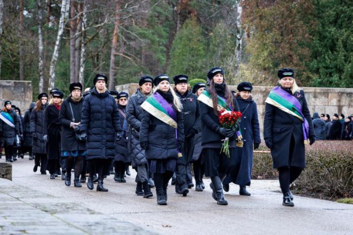 After the commemoration, participants laid flowers at the statue of Mother Latvia.