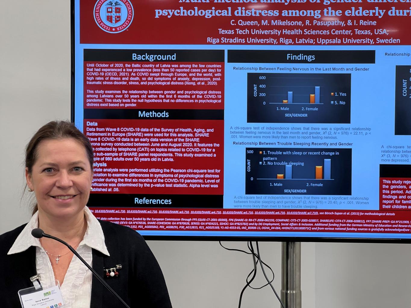 There are currently three active projects that use SHARE data. One is my postdoctoral project about social isolation and loneliness, which will end on 30 April next year. There are also two international projects. One of them analyses and compares healthy ageing in Latvia and Iceland. Together with scientific advisor Signe Tomsone and Assoc. Prof. Andrejs Ivanovs’ PhD student Madara Miķelsone we have created an index of healthy ageing for Latvia. Our Icelandic partner has its own study with similar but not identical questions. As the WHO has ten universal determinants of healthy ageing, we have created a similar index for Iceland. This is a methodological experiment on how we can compare healthy ageing in two different countries with different research questions. We are at an interesting stage in developing a methodology to compare what seemingly cannot be compared. It will also be possible to apply the methodology more broadly to compare other countries that are very different from an economic and social perspective.