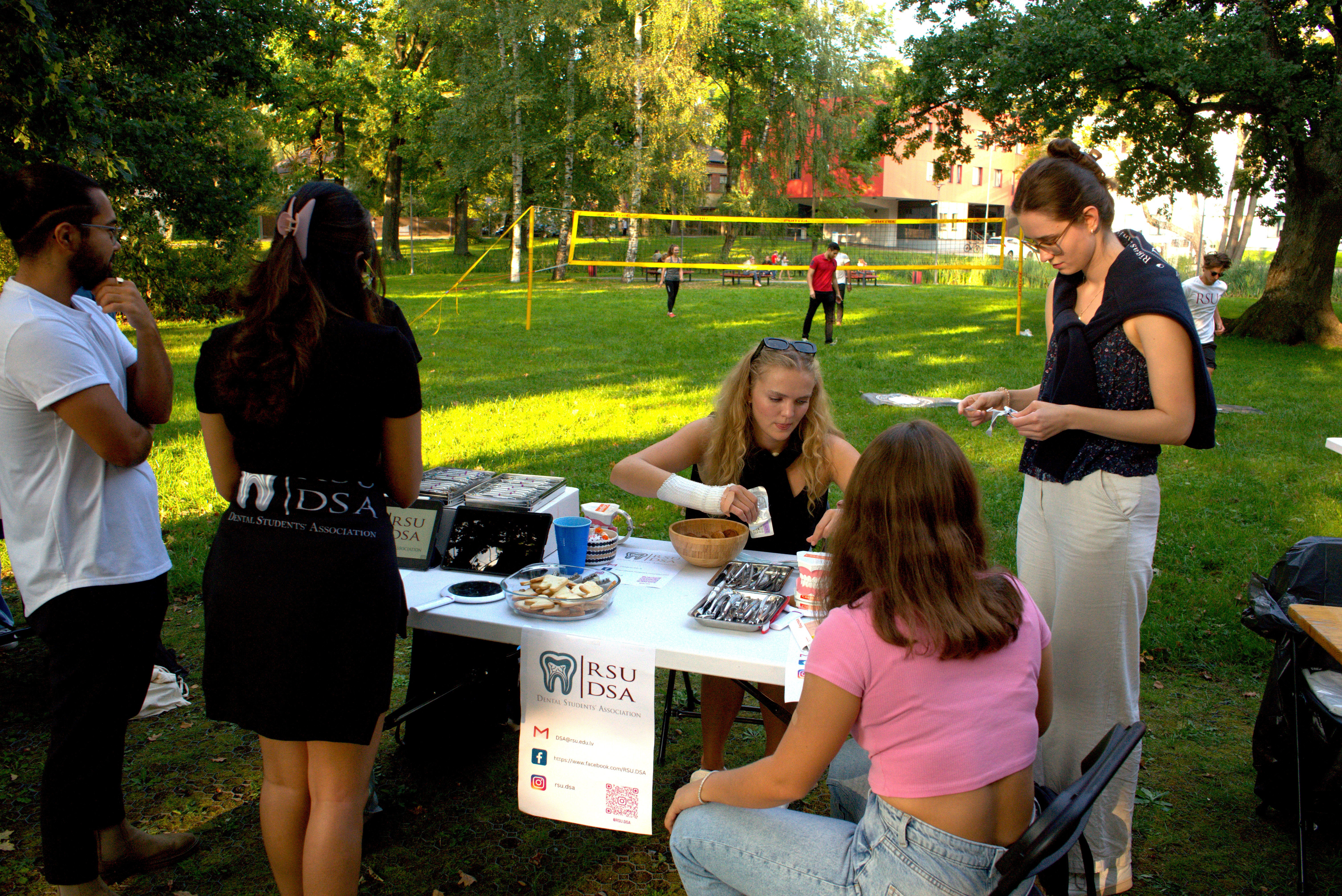 Amelie (center) at the RSU ISA Info Fair, representing the University's Dental Student Association. Photo from DSA archive