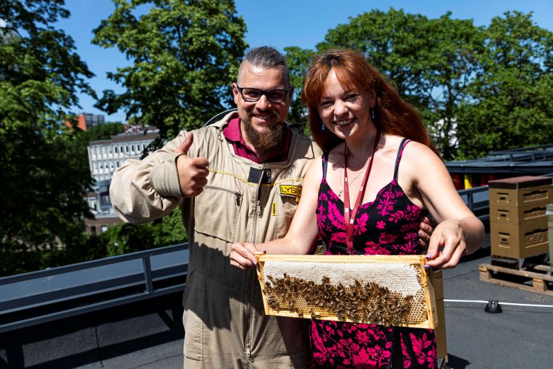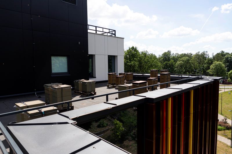In May, new buzzing neighbours moved in on the roof of Rīga Stradiņš University’s (RSU) newest and most modern building, the Pharmaceutical Education and Research Centre. Beekeeper Kārlis Krievkalns has placed 16 beehives here, in keeping with the University’s commitment to sustainability through making full use of urban spaces.