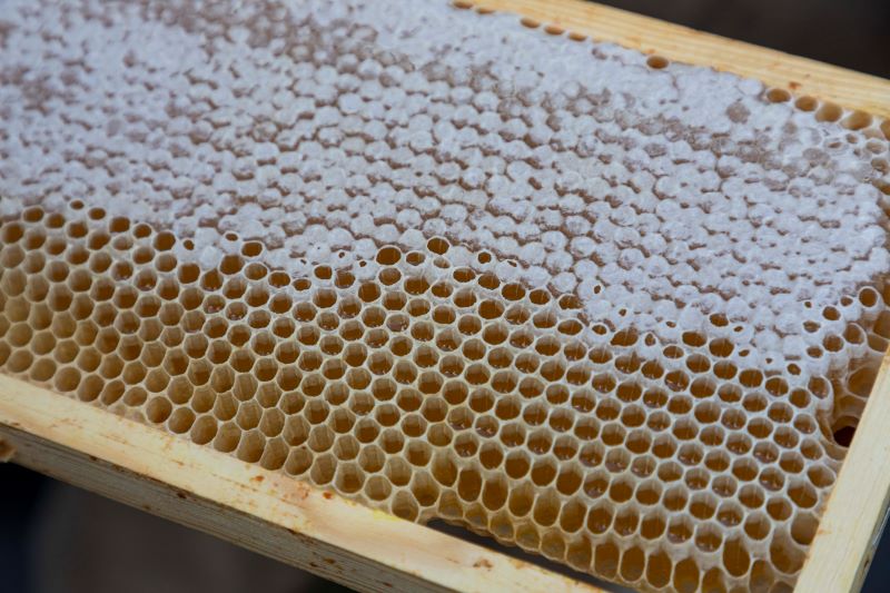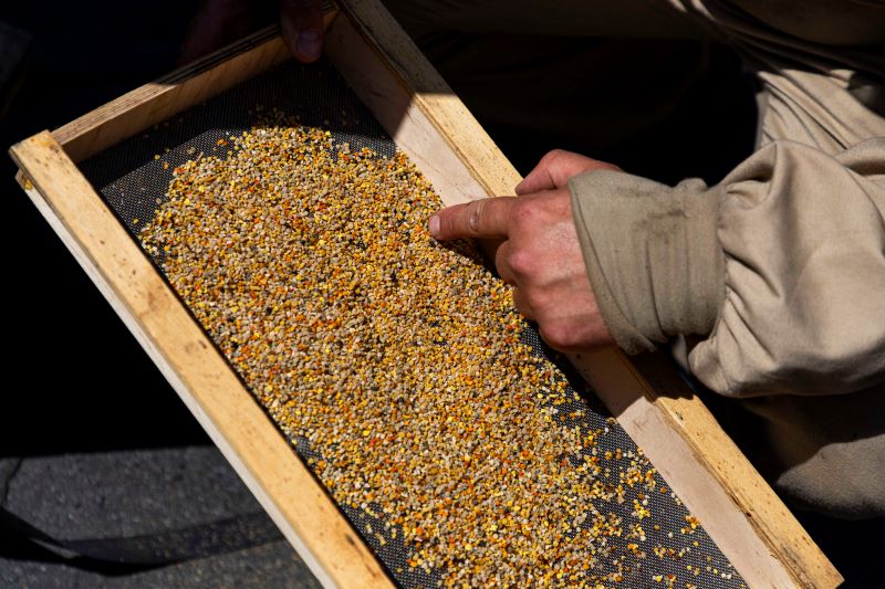 Close-up of pollen on a frame. Photo from RSU archive