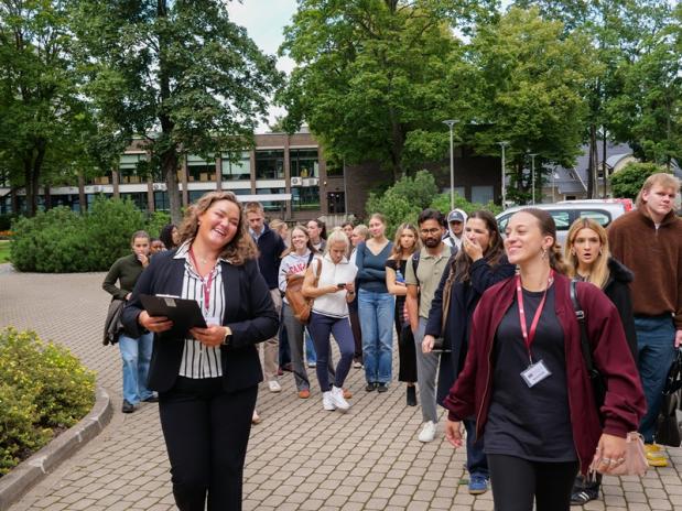 Despite heavy rain and thunder on the first day, many students arrived eager to begin their journey at RSU. Welcome Week was opened with greetings from Toms Baumanis, RSU Chancellor, and Reinis Gailītis, Head of the International Admissions Office. The day was moderated by Māris Ginters, Director of the International Department, who also introduced the September 2025 admission. Students learned how to use the MyRSU portal and heard current international students Karlijn Johanna Linda Henricus Op de Laak's and Johanna Hamra's stories first impressions of Latvia. On the first two days, new students could also join a walking tour of the RSU main building to familiarise themselves with their new study environment.