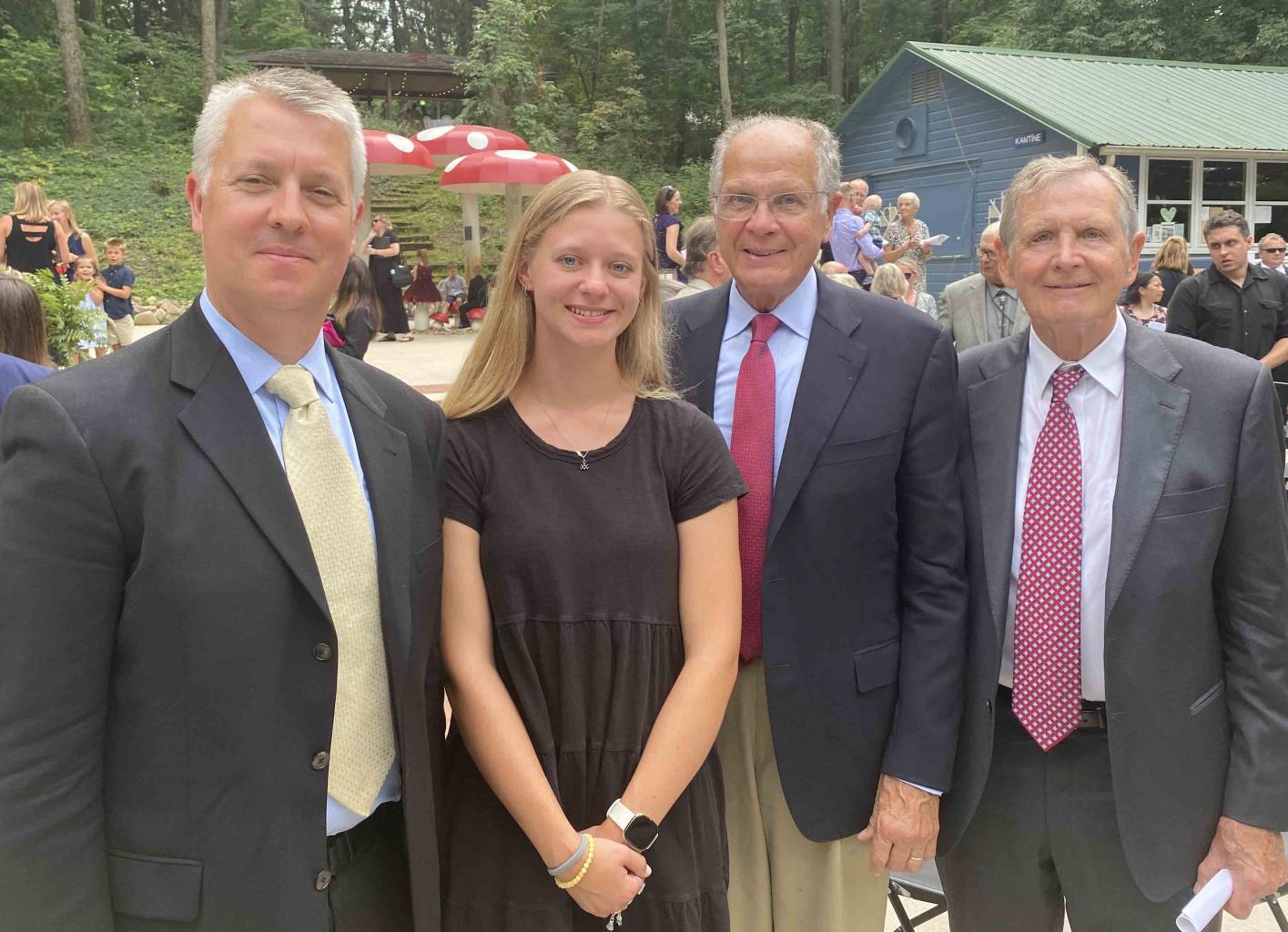 Recipient of the LMF Student Scholarship, Sarma Ejups, with LMF Board Members Aleksandrs Kalniņš, Bertrams Zariņš, and Kristaps Zariņš. Photo from the LMF archive