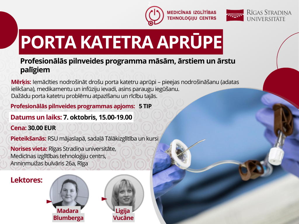 Mērķauditorija:māsas, ārsti, ārsta palīgiTālākizglītības punkti:5Dalības maksa:63 EURLektores:Madara Blumberga, Ligija Vucāne, Diāna Grase, Anna BosjukaPieteiktiesLocationRoomRSU Medicīnas izglītības tehnoloģiju centrsDate: 23.10.2025. Contacts Service Provision UnitE-mail: kursi [at] rsu.lv Agnese DreimanePhone: +37167409171E-mail: agnese.dreimane [at] rsu.lv