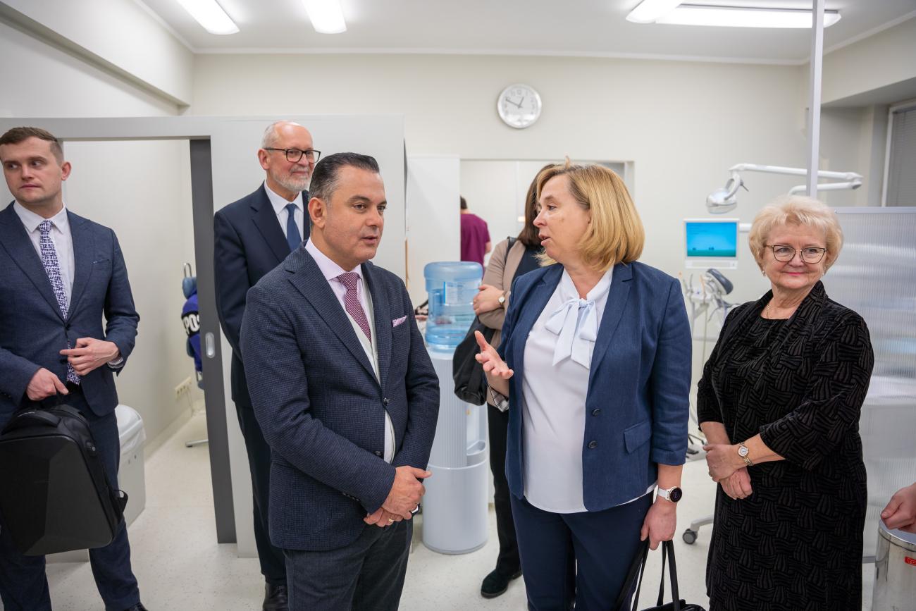 On Friday, 16 February, the Minister for Health Hosams Abu Meri visited the pre-clinical facilities of the Rīga Stradiņš University (RSU) Faculty of Dentistry and the RSU Institute of Stomatology. The purpose of the visit was to learn about current issues and problems in paediatric and adolescent dentistry, as well as inspect the facilities where aspiring dentists acquire their professional skills in a safe simulated environment. During the meeting, the minister and RSU management agreed on the establishment of the RSU Children's Dental Centre.