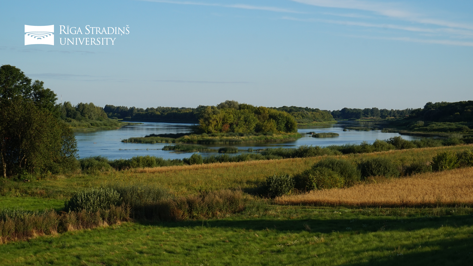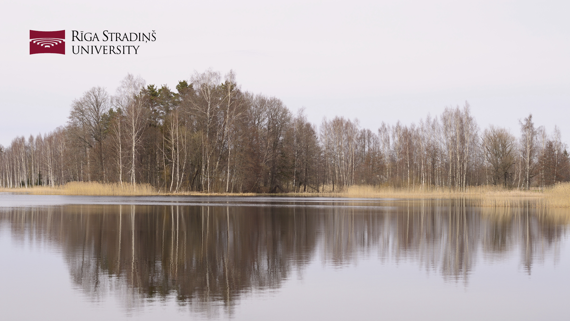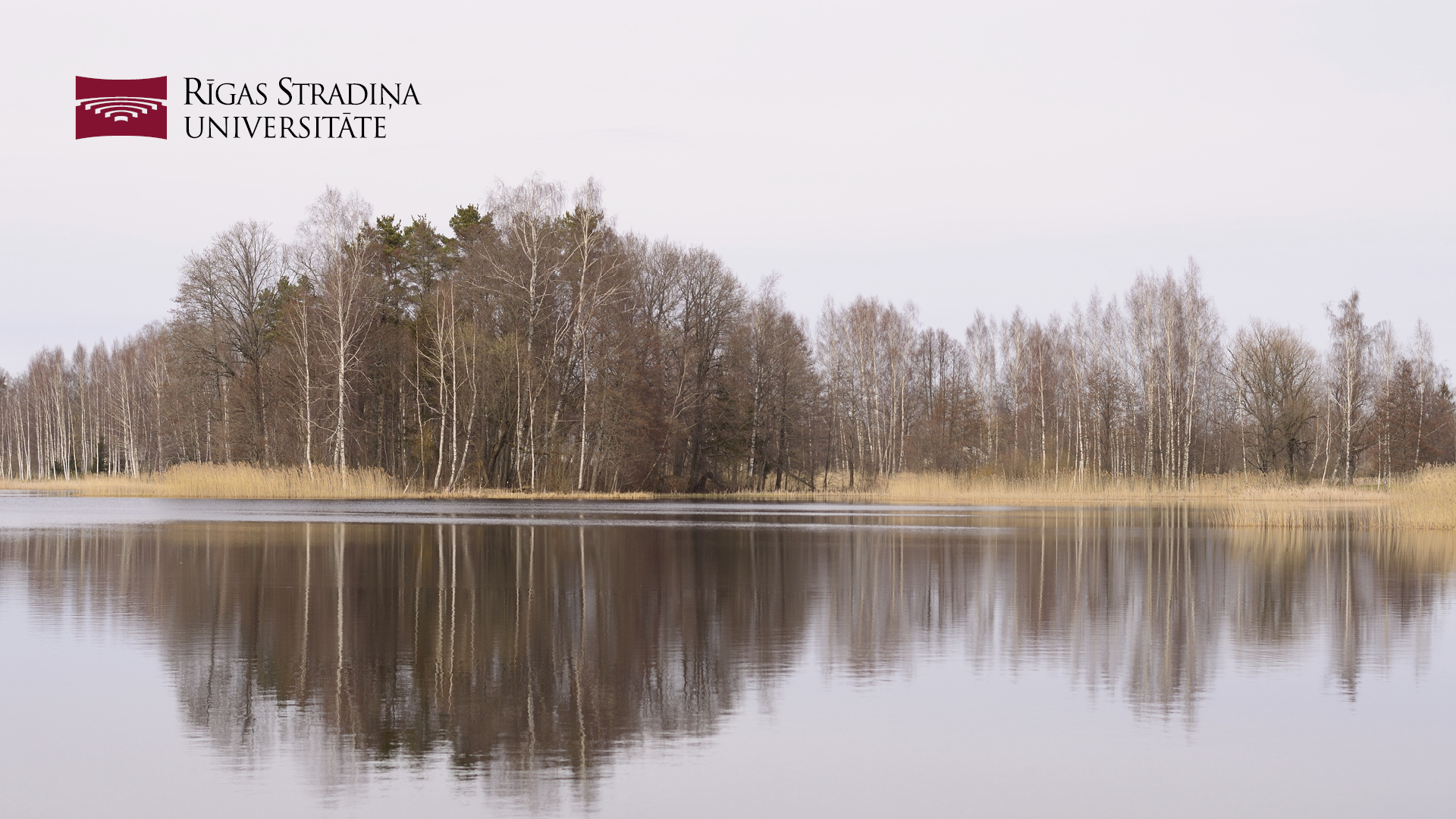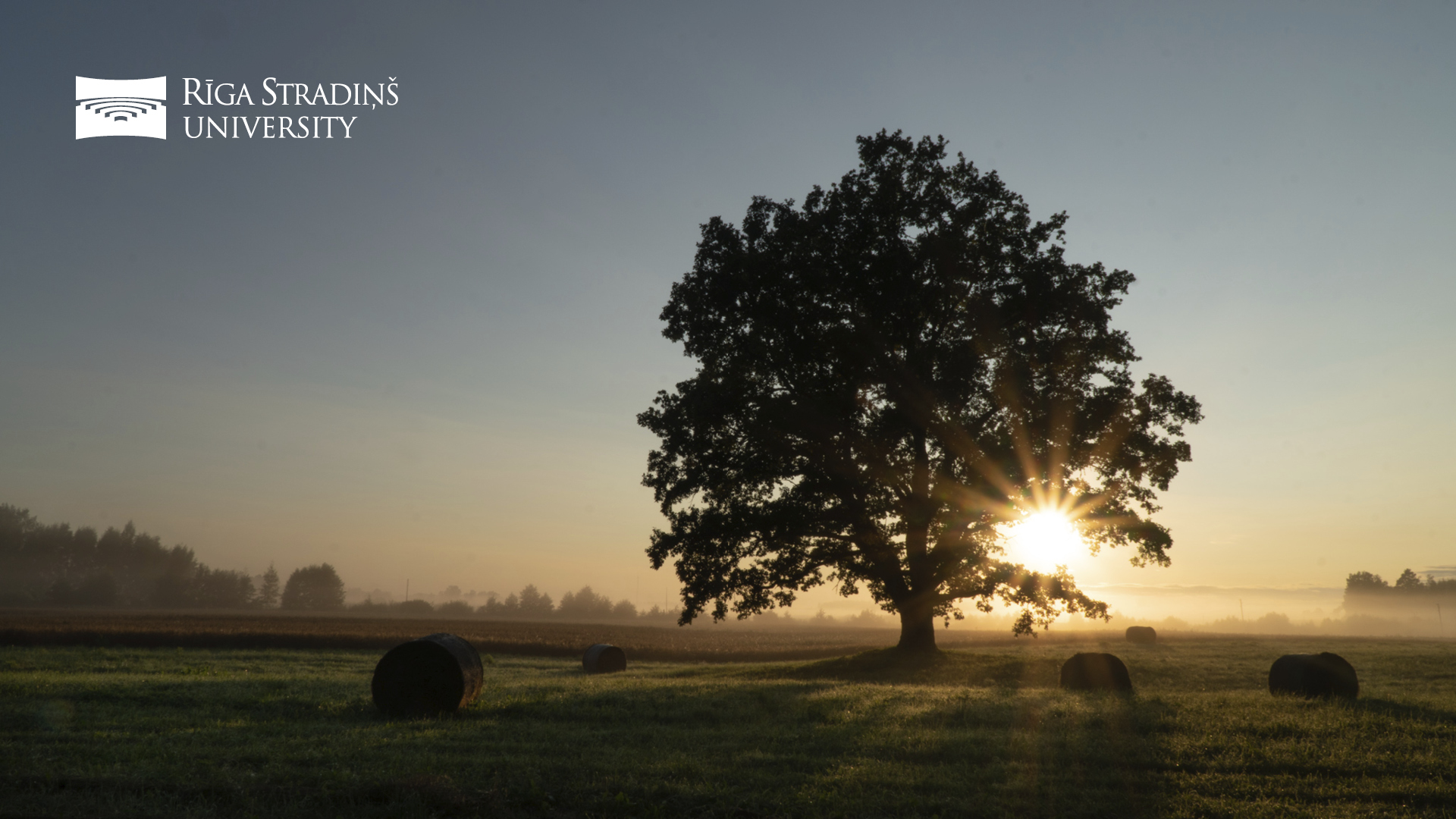 | RSU 75th anniversary logo. Picture of country house in the mist. Language: Latvian. Size: 1920x1080px |