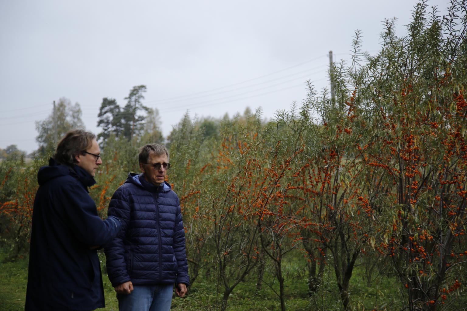 Sea buckthorn research near Burtnieki: Mārtiņš Bitāns (left) and Andrè Thiemann