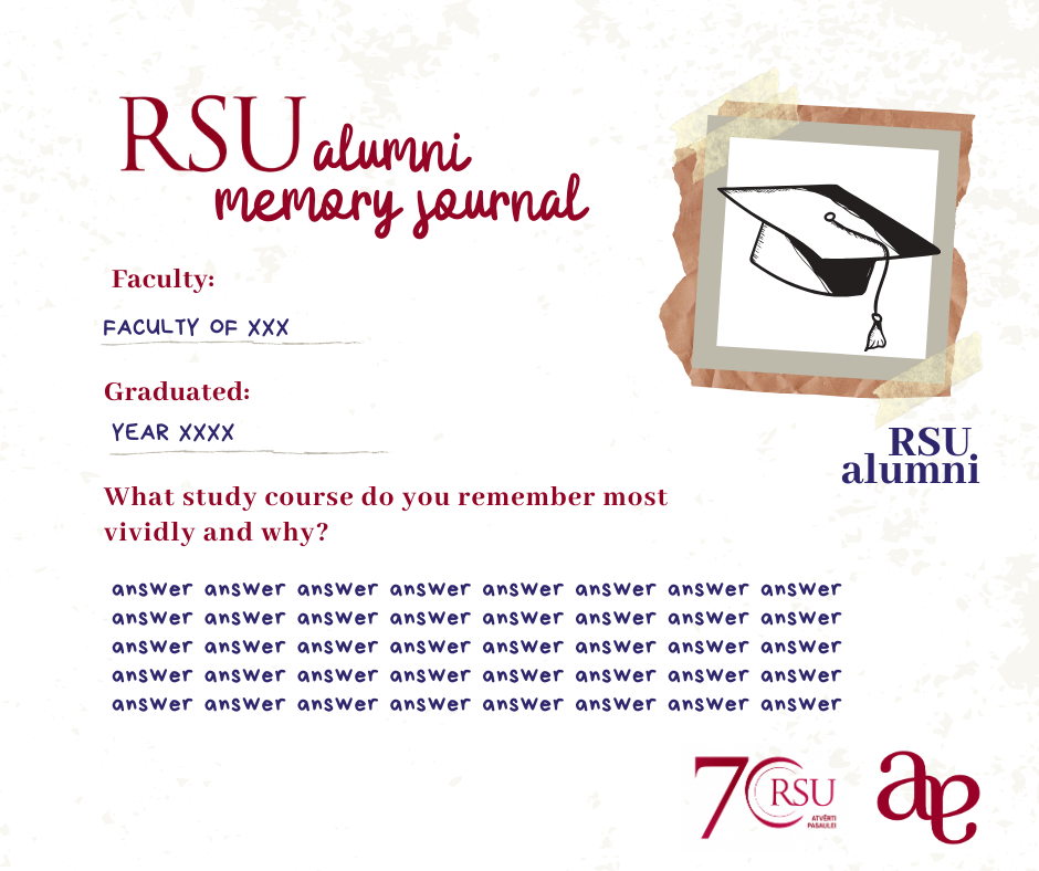 This year in honour of RSU's 70th Anniversary, we want to collect and share memories of our alumni. Take part in the campaign and reminisce about the time spent in RSU!