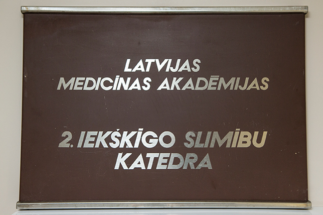 Metal plate: 2nd Department of Internal Diseases of the Latvian Academy of Medicine.