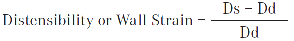 The distensibility can be calculated as Ds – Dd, where Ds is end-systolic diameter of artery, Dd is the end-diastolic diameter.