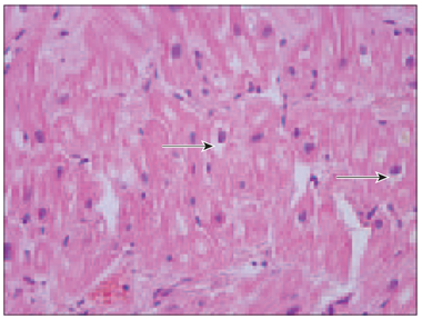 Review pictures. In all specimens, myocardial degeneration with diffuse vacuolation of cardiomyocytes was detected especially in perinuclear region (Figure 1).