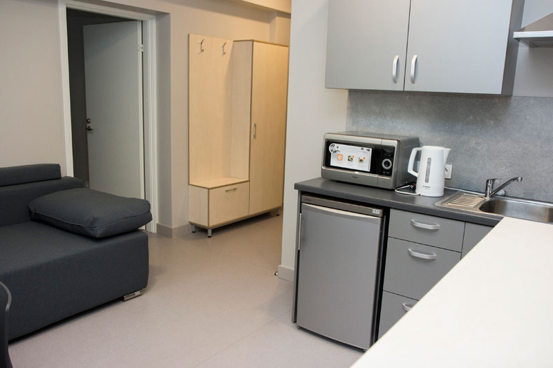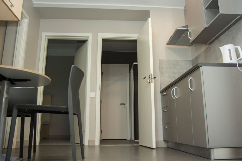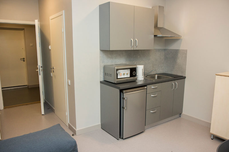 - BM2 category rooms (Single and shared (double) room with bathroom and kitchen area. Area: 17.8 - 21 sq. m) Block 1