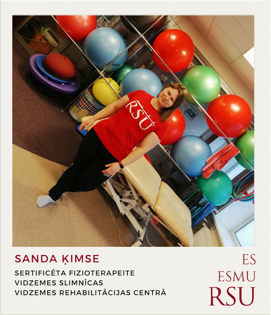 Sanda Ķimse 2015. gadā absolvējusi Rehabilitācijas fakultātes programmu Fizioterapija, iegūstot bakalaura grādu veselības aprūpē un fizioterapeita kvalifikāciju. |