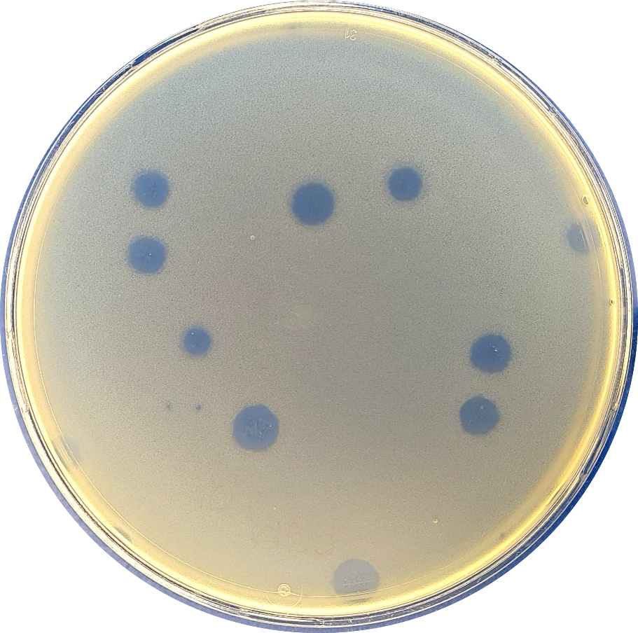 Lītiskais P. aeruginosa bakteriofāgs dubultā agara TSA plates