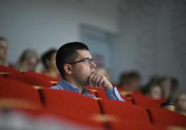 Konference "Vai viegli būt jaunam?". Attēlā: lektors Kārlis Rācenis