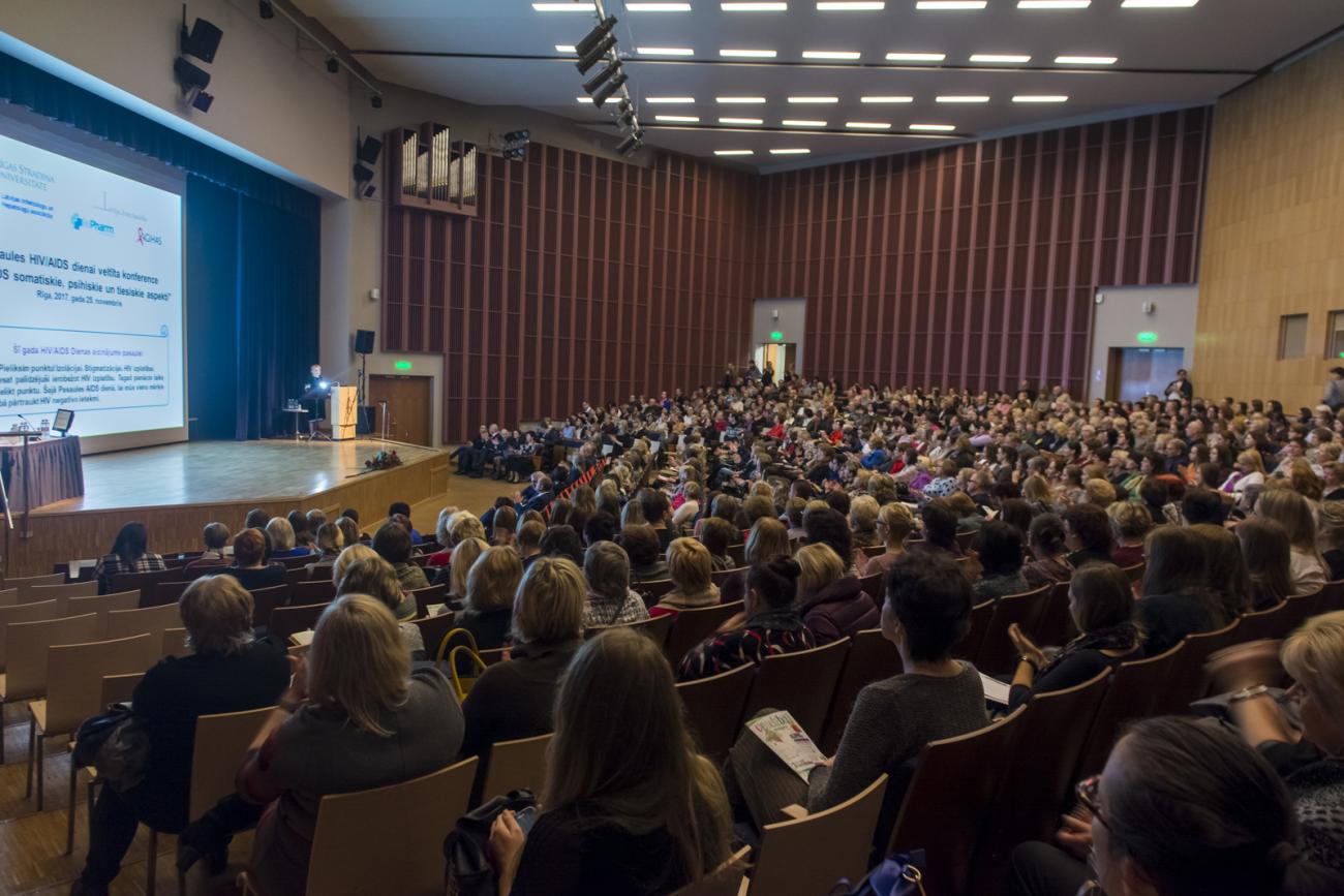 Konference “HIV/AIDS somatiskie, psihiskie un tiesiskie aspekti” Rīgas Stradiņa universitātes aulā 2017. gada 25. novembrī.