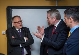 29. martā RSU vizītē bija ieradies Ministru prezidenta biedrs un ekonomikas ministrs Arvils Ašeradens (kreisajā malā)