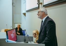 RSU veselības studiju prorektors prof. Guntis Bahs piedalās Padomnieku konventa sēdē Borisa Tetereva auditorijā, Medicīnas izglītības tehnoloģiju centrā