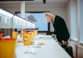 RSU Padomnieku konventa loceklis Māris Rēvalds apskata Medicīnas izglītības tehnoloģiju centru