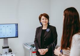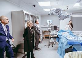 RSU Padomnieku konventa locekle Sandra Kaija kopā ar kolēģiem apskata Medicīnas izglītības tehnoloģiju centru