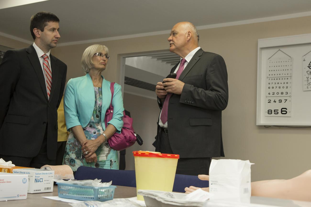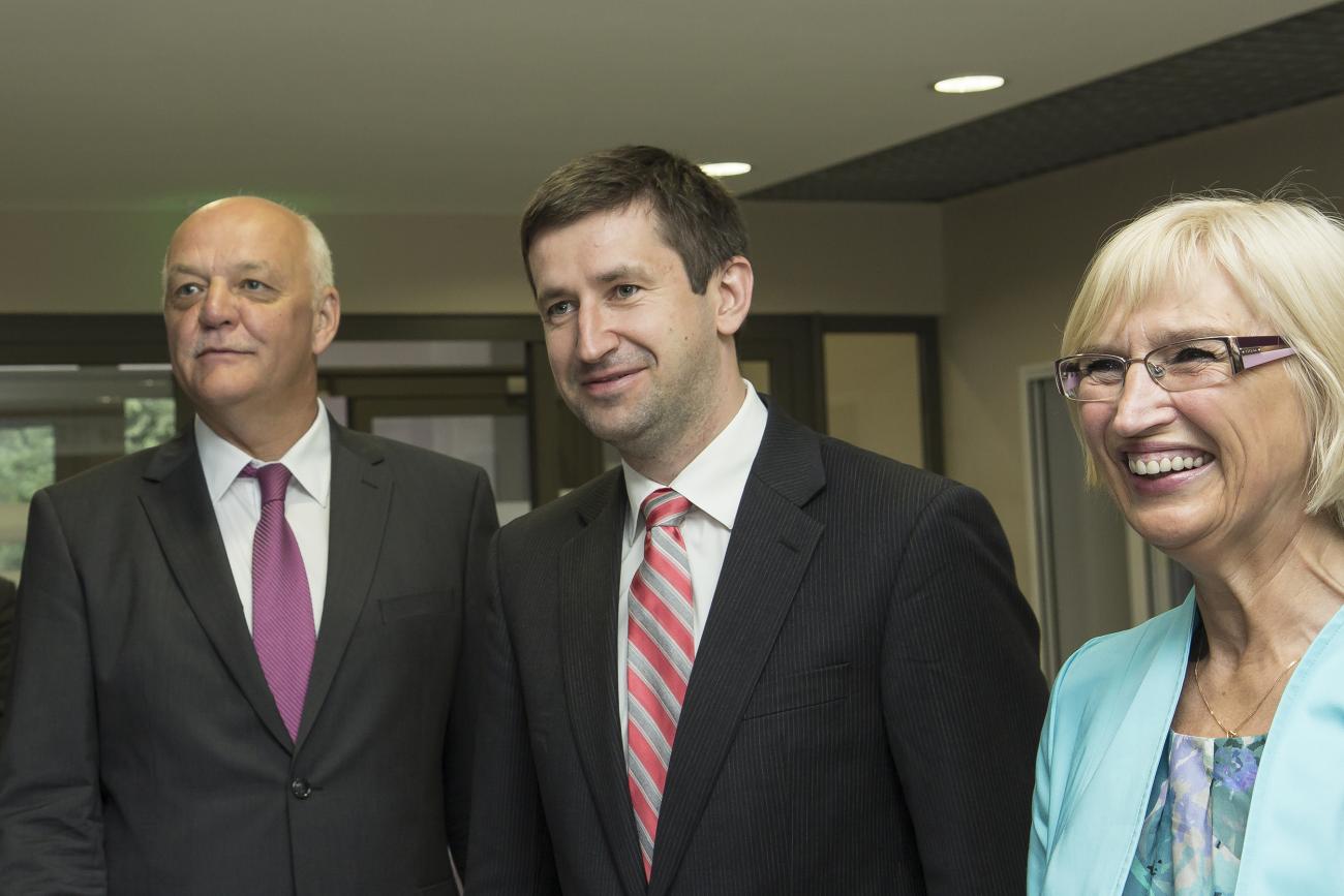 No kreisās: rektors prof. Jānis Gardovskis, izglītības un zinātnes ministrs Vjačeslavs Dombrovskis un veselības ministre Ingrīda Circene