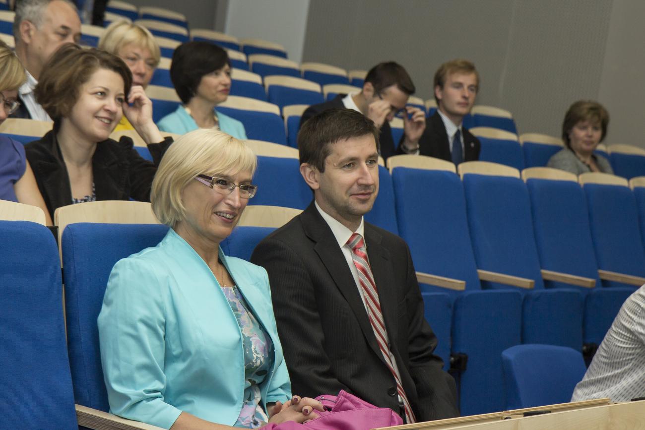 No kreisās: rektors prof. Jānis Gardovskis, izglītības un zinātnes ministrs Vjačeslavs Dombrovskis