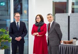 RSU rektors prof. A. Pētersons, izglītības un zinātnes ministre A. Čakša un Veselības ministrijas valsts sekretāre Agnese Vaļuliene