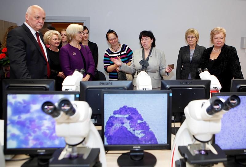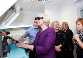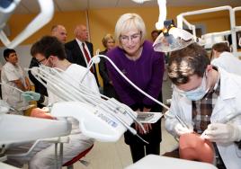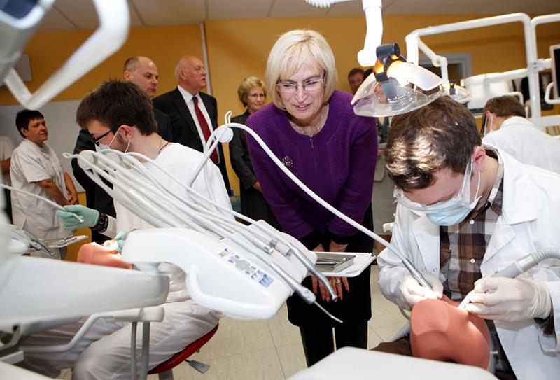Veselības ministre Ingrīda Circene zobārstniecības pirmsklīnisko mācību telpu atklāšanā