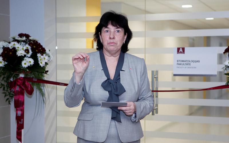 Stomatoloģijas fakultātes dekāne prof. Ingrīda Čēma zobārstniecības pirmsklīnisko mācību telpu atklāšanā