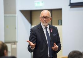 Rektors prof. Aigars Pētersons piedalās diskusijā Padomnieku konventa sēdes laikā