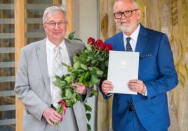 2024. gada 21. jūnijā RSU rektors prof. Aigars Pētersons kolēģiem pasniedz IZM Atzinības rakstus