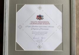 RSU rektoram pasniegts Valsts prezidenta cildinājuma raksts
