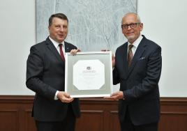 Rektors Jānis Gardovskis saņem Borisa un Ināras Teterevu fonda Goda zīmi