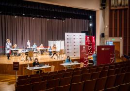 Rīgas Stradiņa universitātes studējošo un darbinieku balsvakcinācija pret COVID-19 RSU aulā 2022. gada 7. janvārī.114696