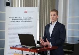 Mācīšanas un mācīšanās projektu vadītājs Raimonds Strods uzrunā klātesošos