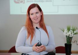 Pedagoģiskās izaugsmes centra direktore Nora Jansone-Ratinika uzrunā klātesošos