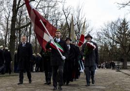 Latvijas studentu un studenšu korporācijas, akadēmiskās vienības un Latvijas augstskolu vadītāji tradicionālajā gājienā un piemiņas brīdī Brāļu kapos 2022. gada 18. novembrī
