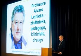 Laudatio jeb slavinājuma runu teica RSU Iekšķīgo slimību katedras prof. Oskars Kalējs