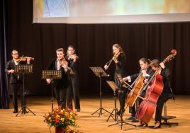 Muzikālo priekšnesumu sniedza vijolnieks Daniils Bulajevs ar stīgu kvintetu
