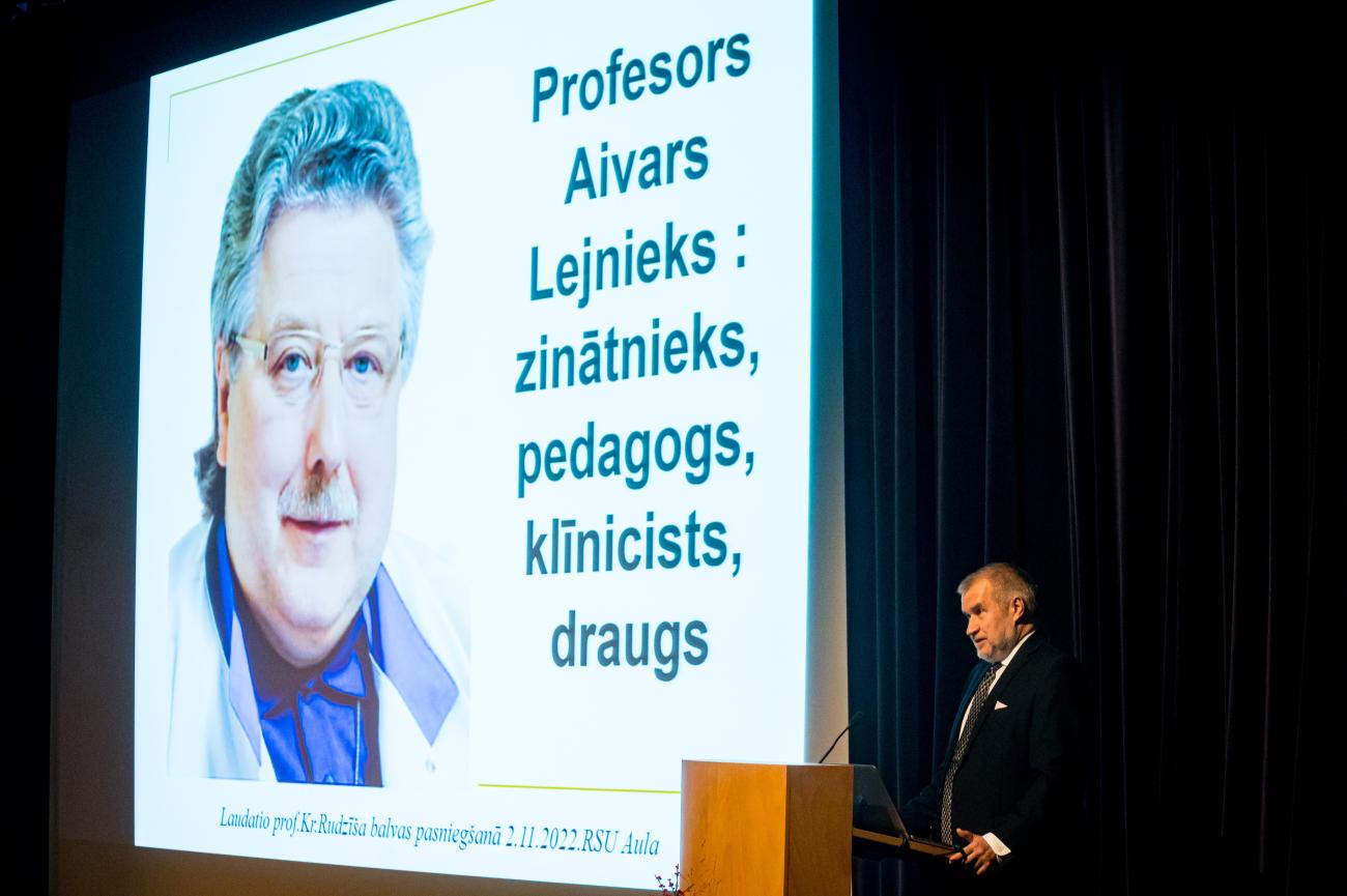 2022. gada 2. novembrī RSU aulā prof. Aivaram Lejniekam tika pasniegta Kristapa Rudzīša balva